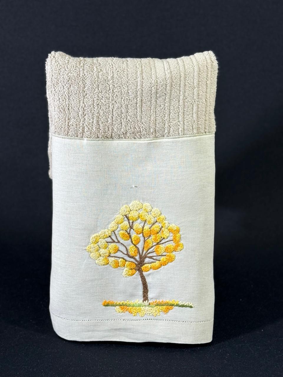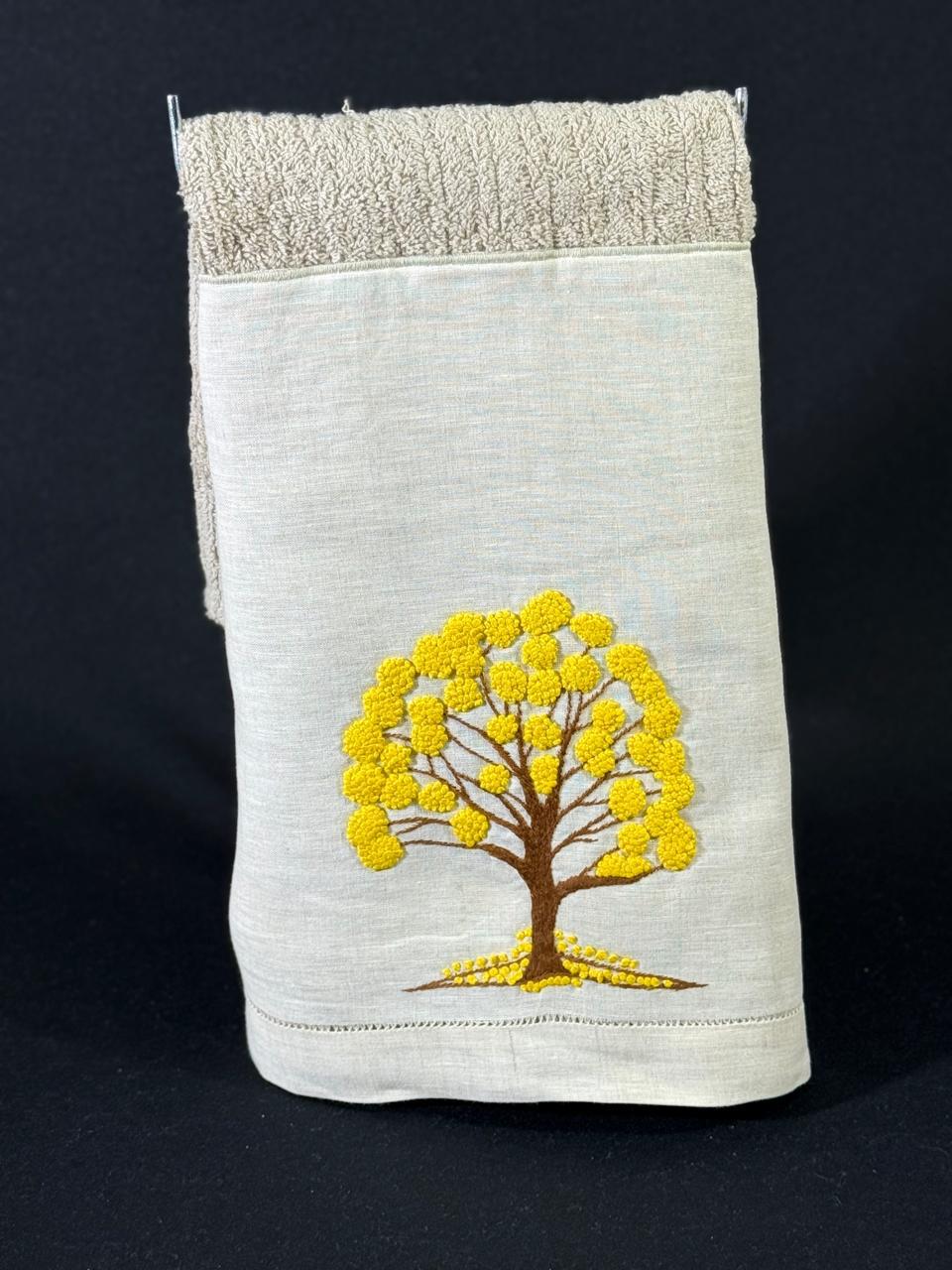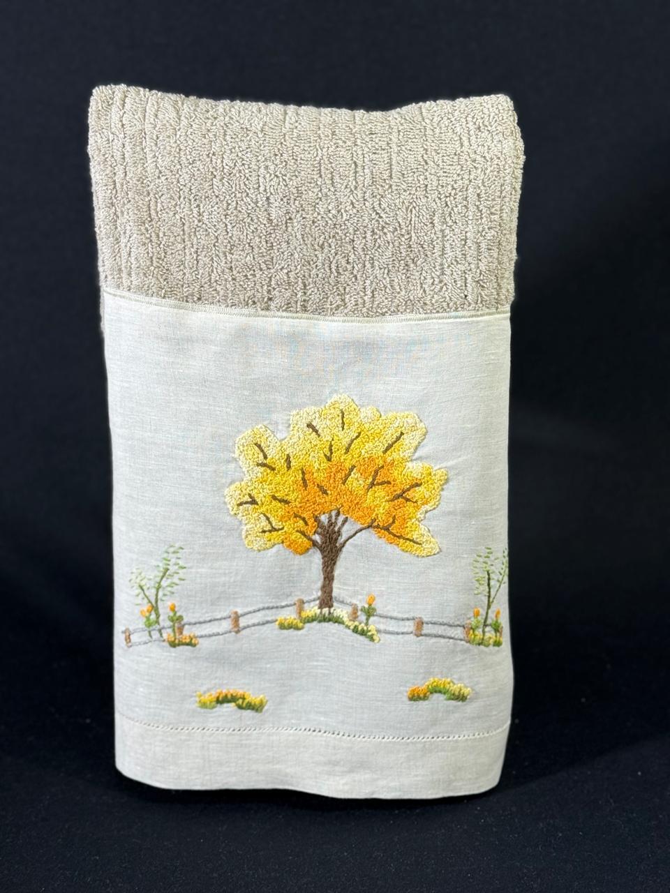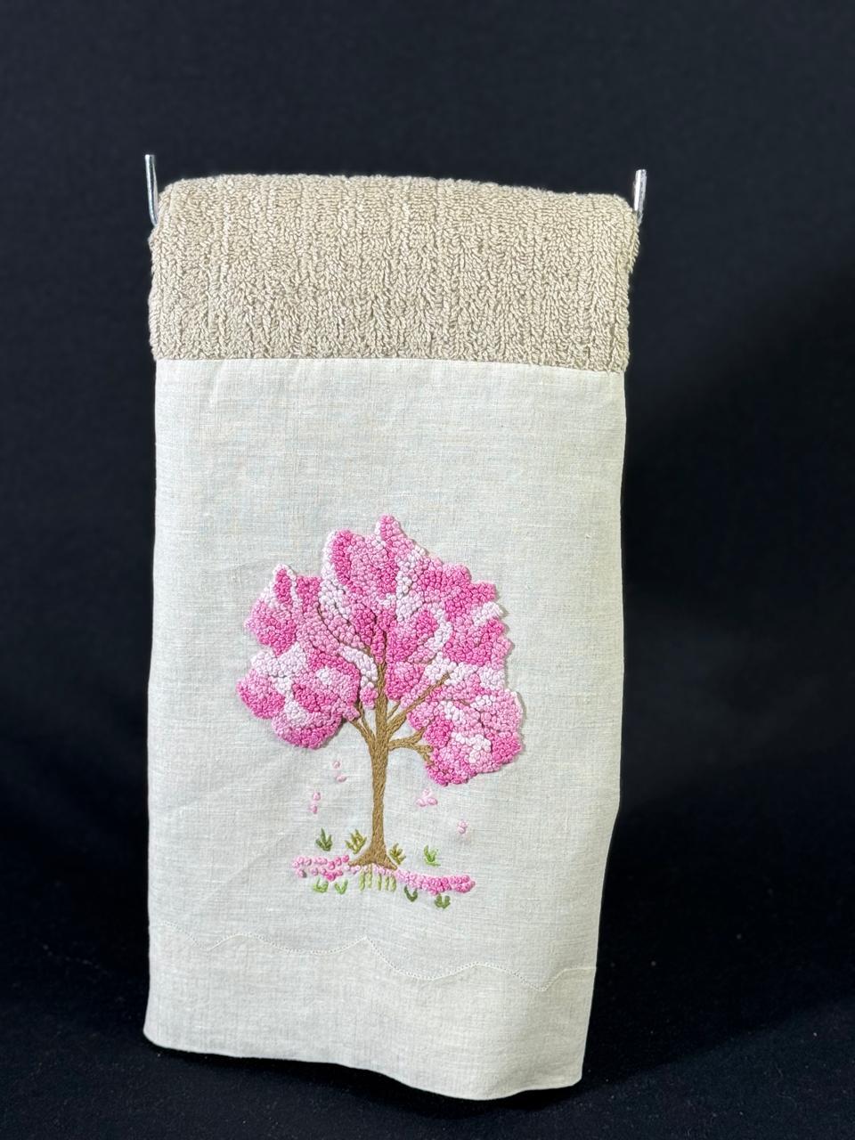 Tamanho: 48 x 98 cm. Bordada à mão na cambraia de linho, toalha da marca Buddmeyer.